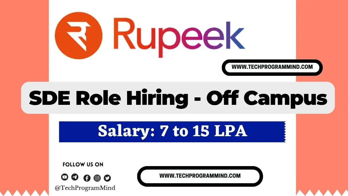 Rupeek is hiring for the position of Software Development Engineer (SDE I). Its a off campus opportunity to work in a product based company.If you have a strong foundation in programming, problem-solving, and cloud technologies, this could be your chance to work with cutting-edge fintech innovation.